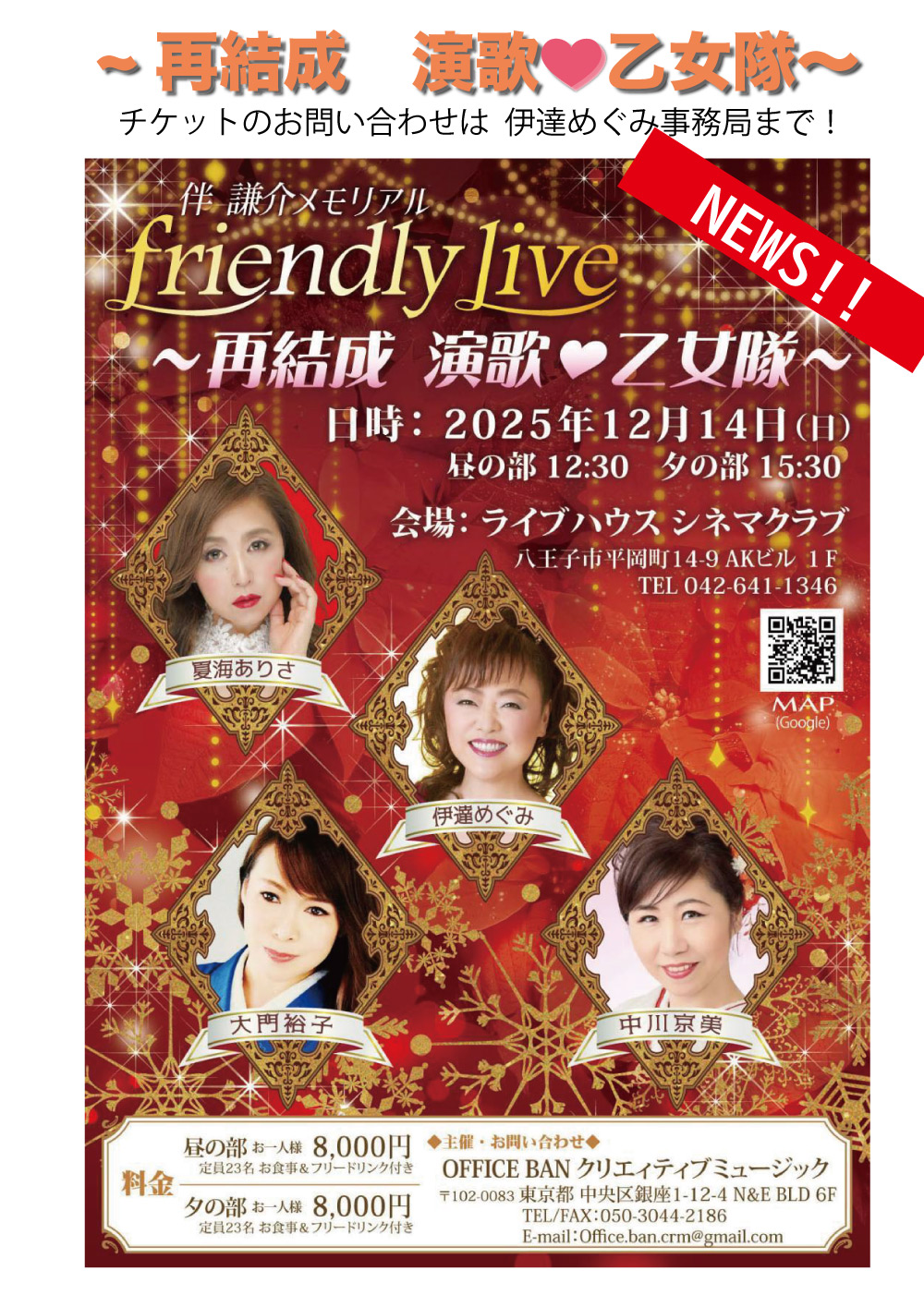 12月に演歌乙女隊が復活します!イベントのチラシを添付しますので、ご予約をお待ちしております。