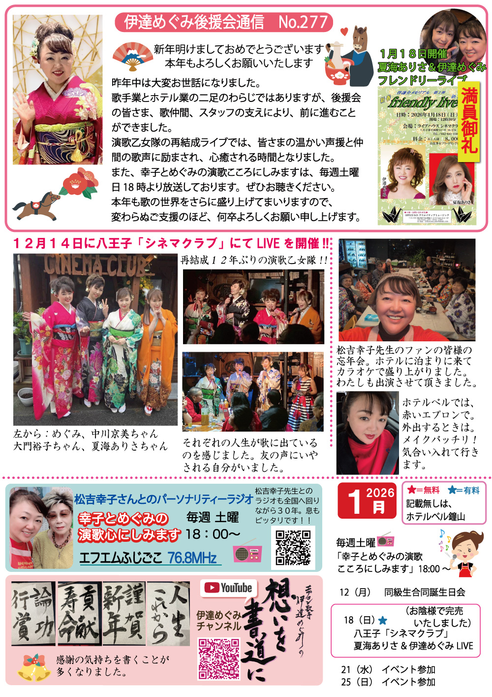 本年も歌の世界をさらに盛り上げてまいりますので、変わらぬご支援のほど、何卒よろしくお願い申し上げます。