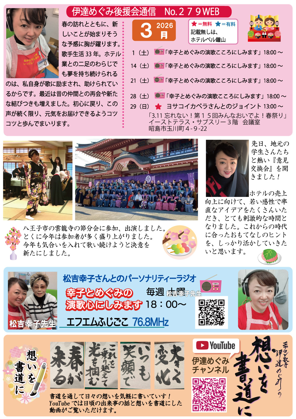 歌手生活33年。歌に生かされていると実感する毎日です。最近は旧友との再結成や新たな縁にも恵まれ、これからの展開にワクワクしています。私の歌で誰かが元気になってくれるなら、どんな形でも歌い続けていきたい。初心を忘れず、一歩ずつ進んでまいります!
